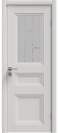 DS – классическая сборочная дверь, выполненная в актуальном покрытии с древесной фактурой: ясень белый матовый. Представлена в глухом и остекленном виде. Стекло — сатинат светлый с гравировкой.